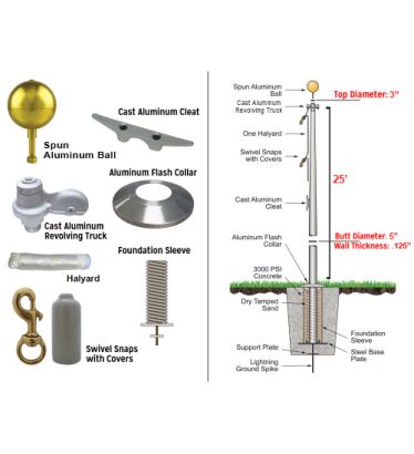 This 25' Standard Commercial Flagpole comes with the following accessories: