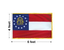 4'x6' Georgia Polyester Outdoor Flags From Tuff Flags are typically flown on Commercial Flag Poles of 25' to 30' height or greater if flown with multiple flags. Made of premium quality 2x2 Ply Polyester fabric , these flags are well suited for high wind conditions. The Dupont UV resistant inks will retain its color richness for a long time. Printed with Dupont ink on Industrial Printers, our flags have a 95% or more ink penetration, which is the best in the industry. Made to the exact official specifications; buy right away.
