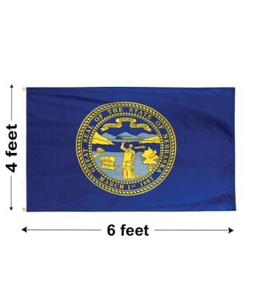 4'x6' Nebraska Polyester Outdoor Flags from Tuff Flags will ensure that your flag display plans won’t go wasted even if the weather turns hostile and the winds get heavy. These heavy duty, thick 2x2 Ply Polyester flags are designed for gusts, frost and hostile weather conditions. These 100% made in USA flags make the middle names of steadfastness and beauty and offer a perfect way to show your state pride at home, offices and business organizations. These flags are ideal for coastal towns, beach resorts and mountain areas where weather beaten ordinary flags will never stand a chance. Recommended to be flown on commercial grade flag poles of 25' to 30' height or more if flown with multiple flags, these flags printed with colorfast Dupont ink in Industrial Printers, enjoy the best color clarity. Designed to the exact official specifications, these single face reverse flags show the flag design precisely on both sides which will round off the elegance of your flag presentation.